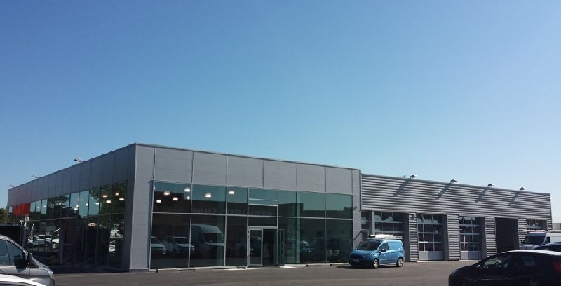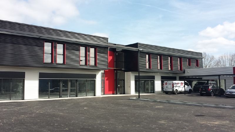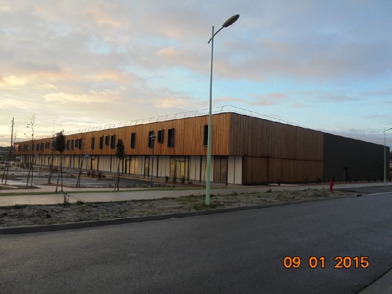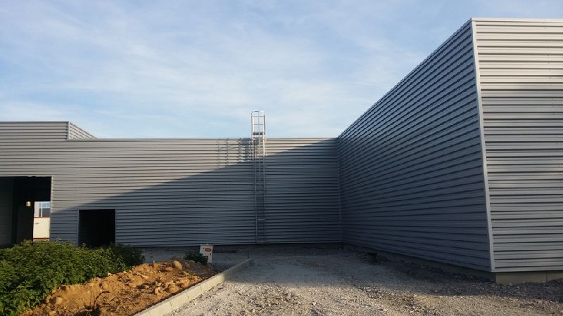 Exemple : construction neuve en zone artisanale avec bâtiment de 9 000 m² (bureaux et ateliers) en bardage trapézoïdal.