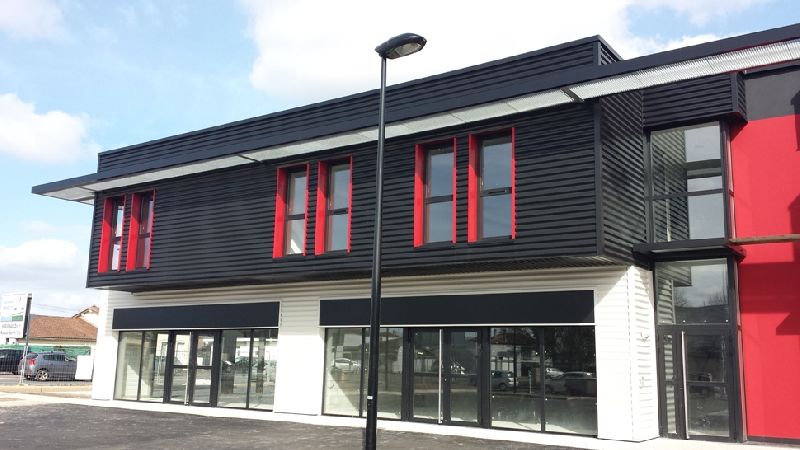 Réalisation de bardage pour des bâtiments commerciaux, en intégrant les enjeux d’image, de durabilité et de performance.