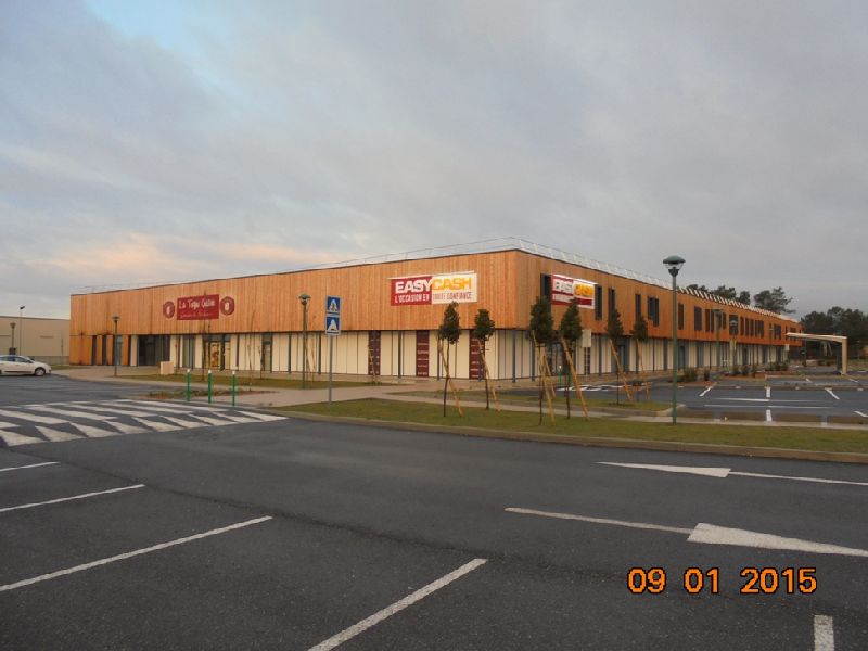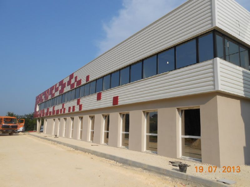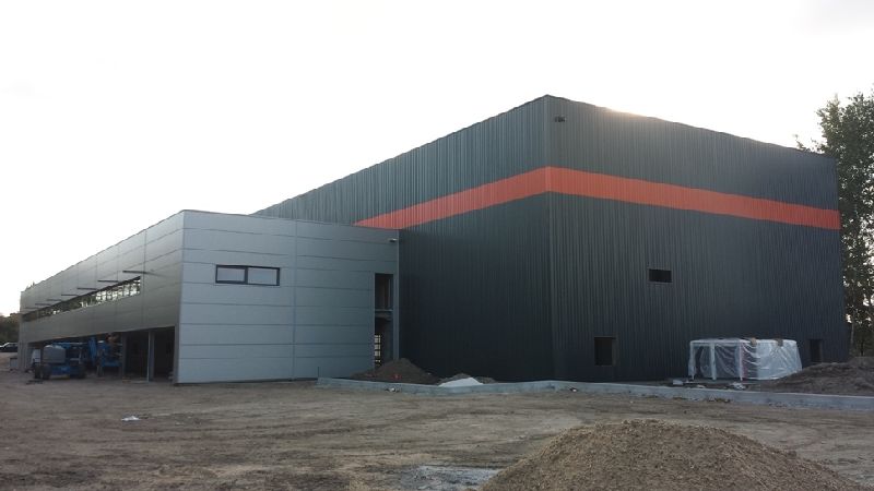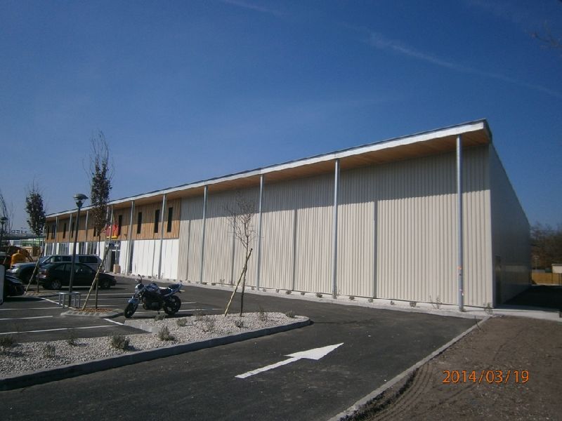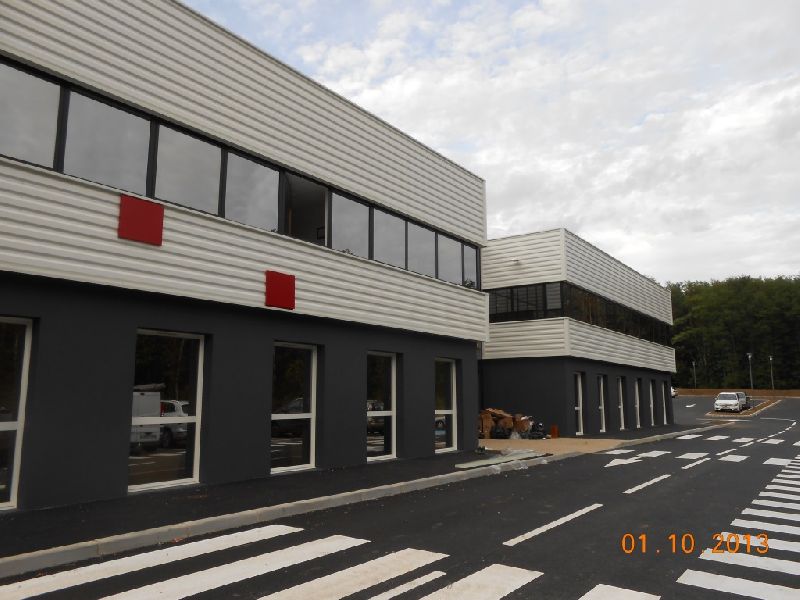 Exemple : construction neuve en zone artisanale avec bâtiment de 9 000 m² (bureaux et ateliers) en bardage trapézoïdal.