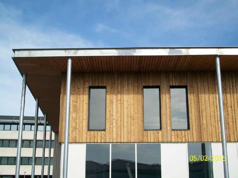 Réalisation de bardage pour bâtiments tertiaires, avec des solutions adaptées aux exigences architecturales et fonctionnelles.